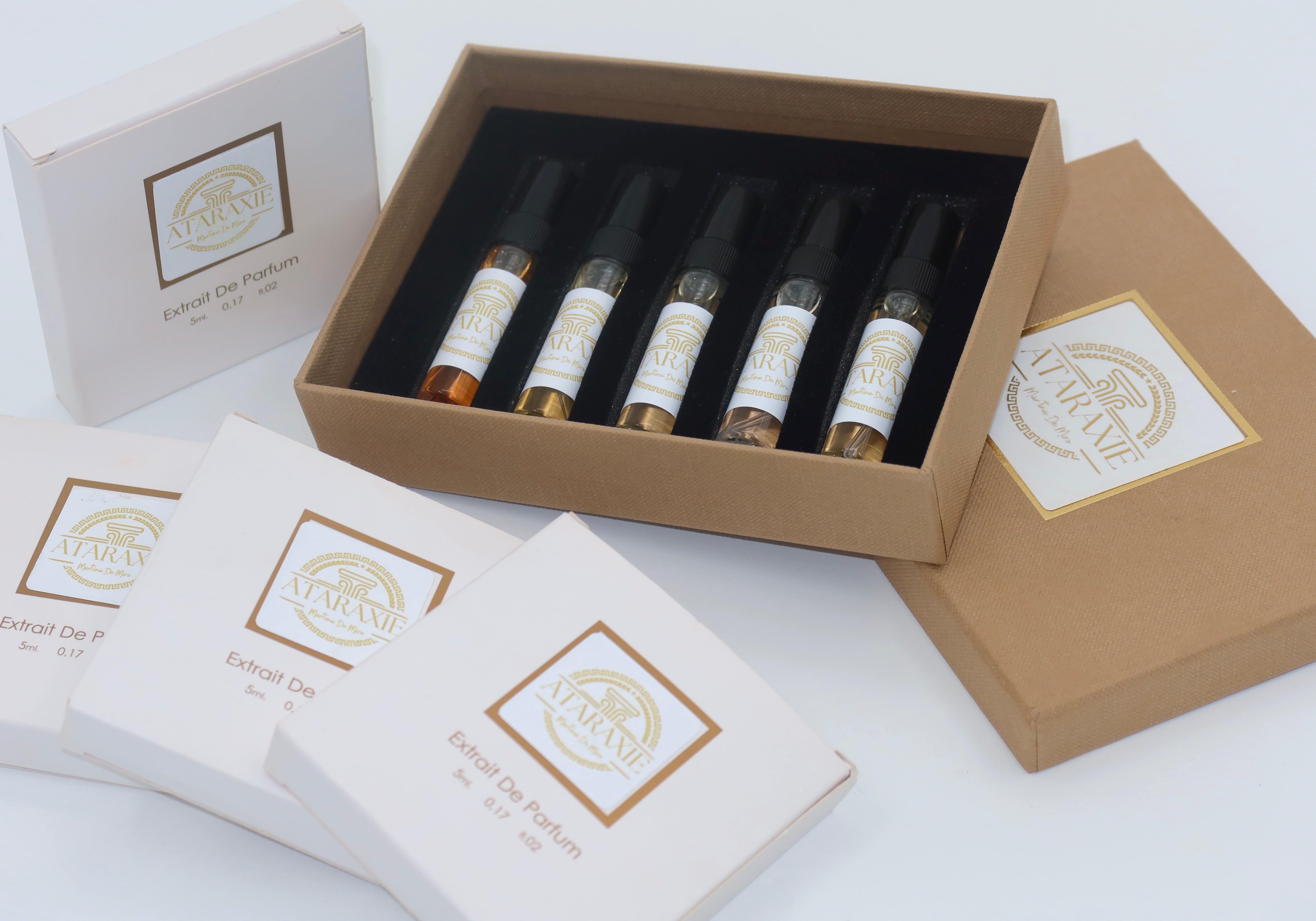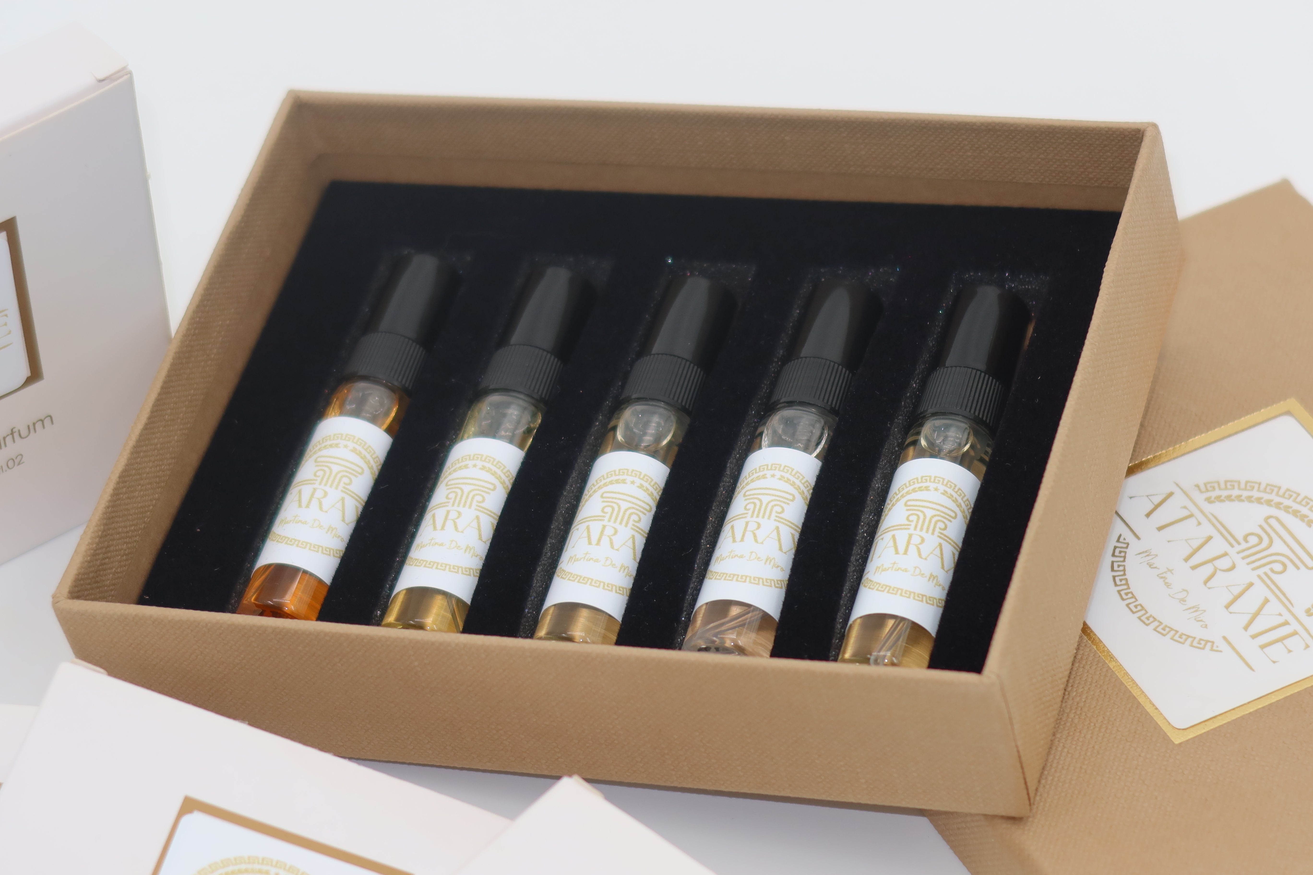 Ataraxie nasce dal concetto di libertà tradotta e sintetizzata in delicatissime note profumate. Il termine deriva dal greco: "Imperturbabilità", veniva utilizzato dagli epicurei per indicare quello stato di perfetta tranquillità e serenità d'animo. l'idea è stata quella di sperimentare numerose essenze affinchè nascesse una fragranza leggera come l'anima,e in grado di suscitare ricordi felici. Il profumo e la sua box sono prodotti artigianalmente e con cura.
